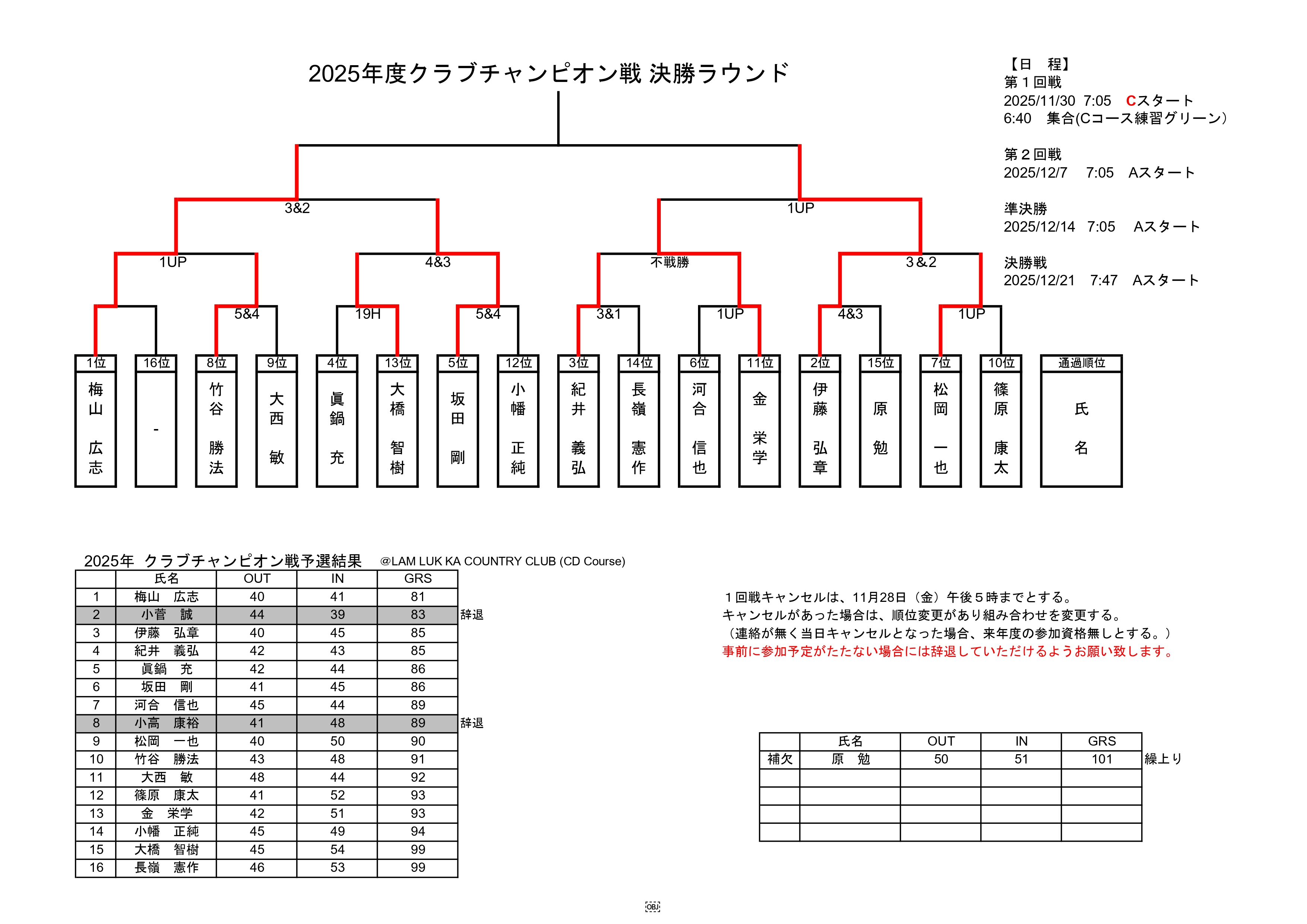 決勝は、12月21日(日)に月例会と同日に開催されます。